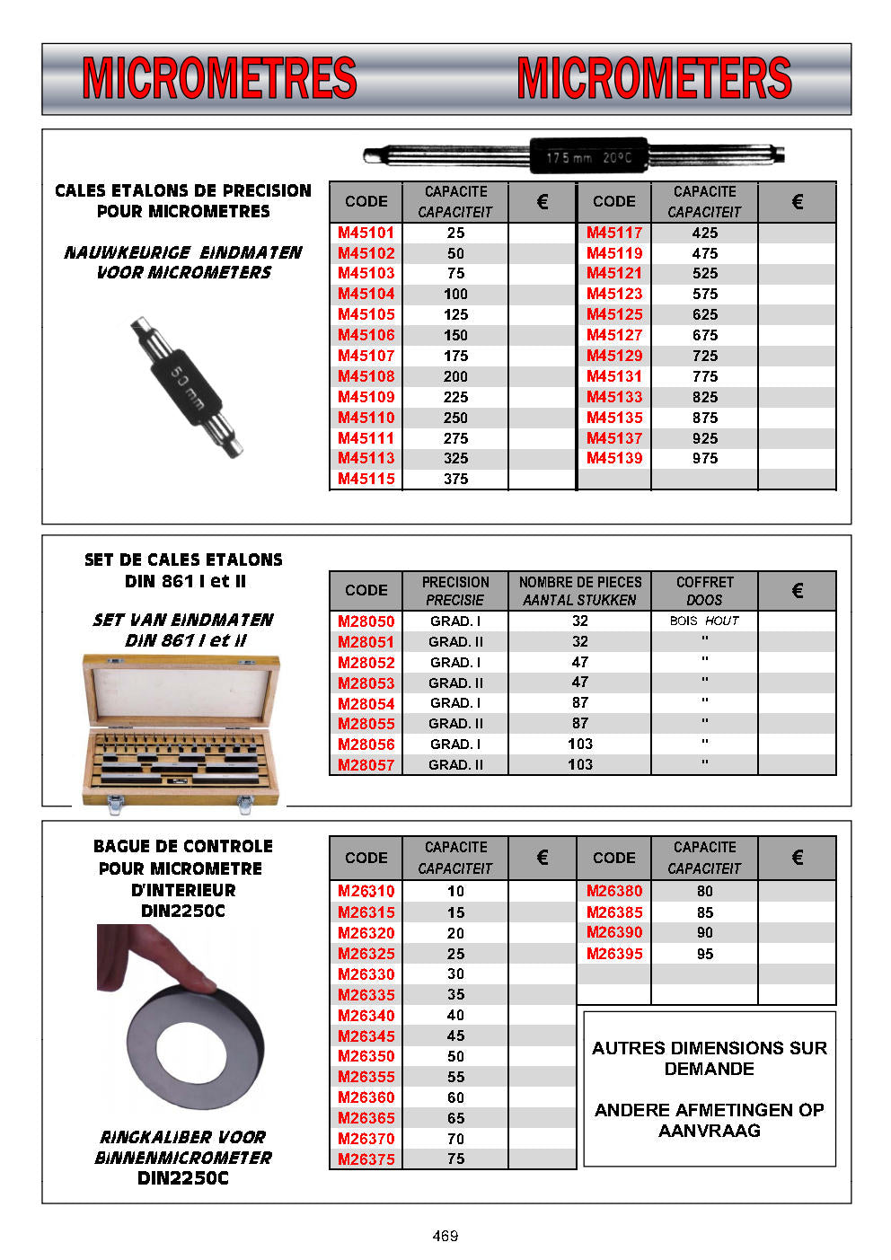 - Cales pour Micromètres